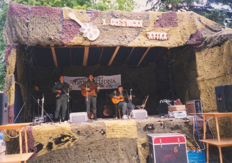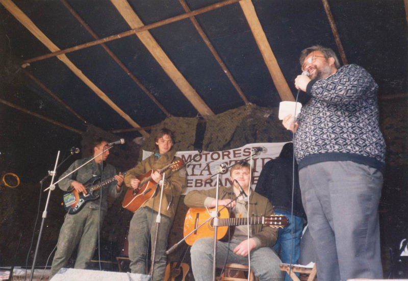 Stala se zde ještě jedna důležitá věc. Díky Mildovýmu taťkovi jsme se zde seznámili s Pupou a Čuňasem z kapely Jantar, kteří zde hráli večerní bál a ti nás pozvali, abychom si s nima zahráli na několika bálech, které měli v nejbližší době domluvené. Na nich jsme se trošku otrkali hraním na pódiu před divákama a na aparaturu.